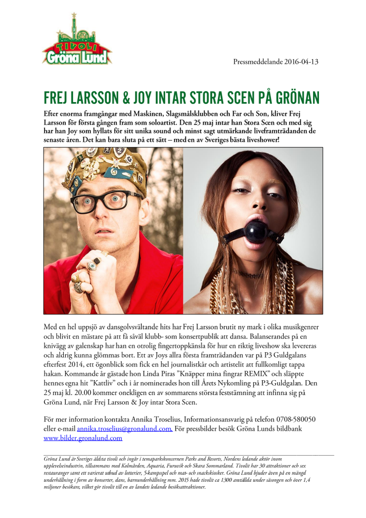 Frej Larsson & Joy intar Stora Scen på Grönan