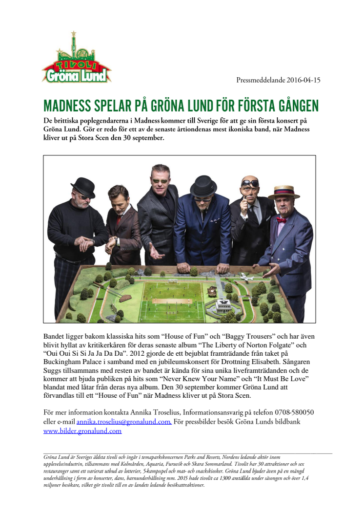 Madness spelar på Gröna Lund för första gången